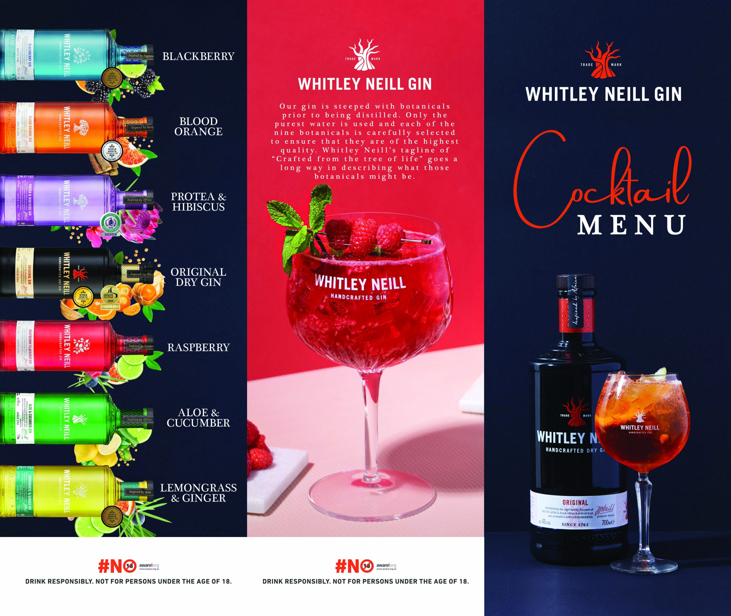 The Raspberry, Blackberry, Blood Orange, and Lemongrass & Ginger flavours draw inspiration from from Scotland, England, Sicily, and Asia while the Original London dry-style gin, Protea & Hibiscus, and Aloe & Cucumber gins are beautifully balanced, African-inspired tipples crafted using a selection of rare and aromatic local botanicals.