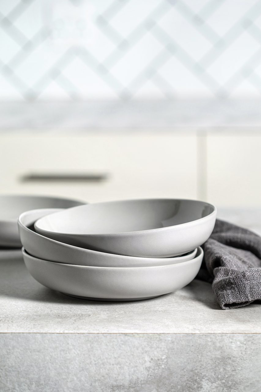 (bowls, pasta bowls and low serving dish) and dark shadow (casserole with lid). Chic, stylish, and modern – it creates an unsurpassed dining experience.
