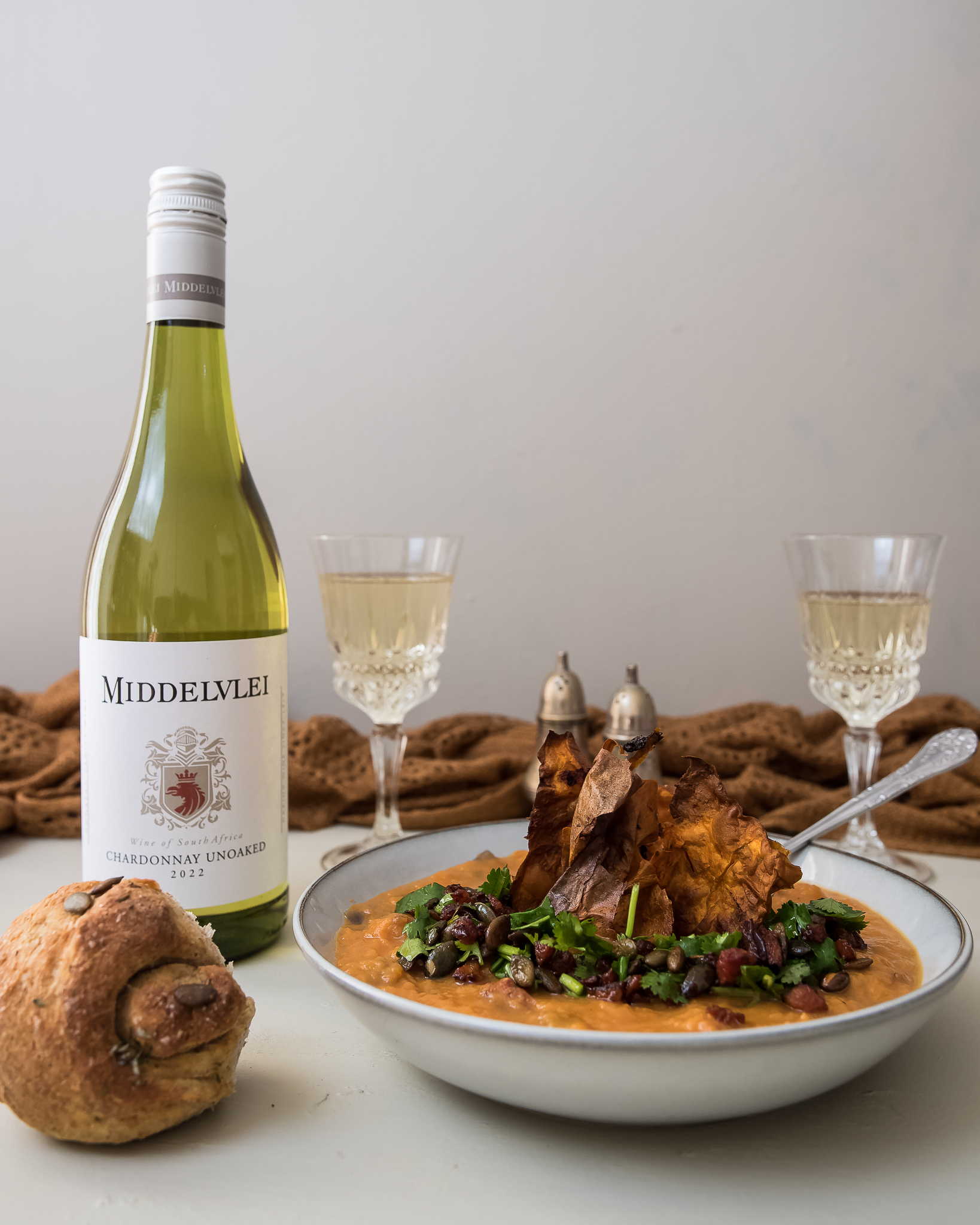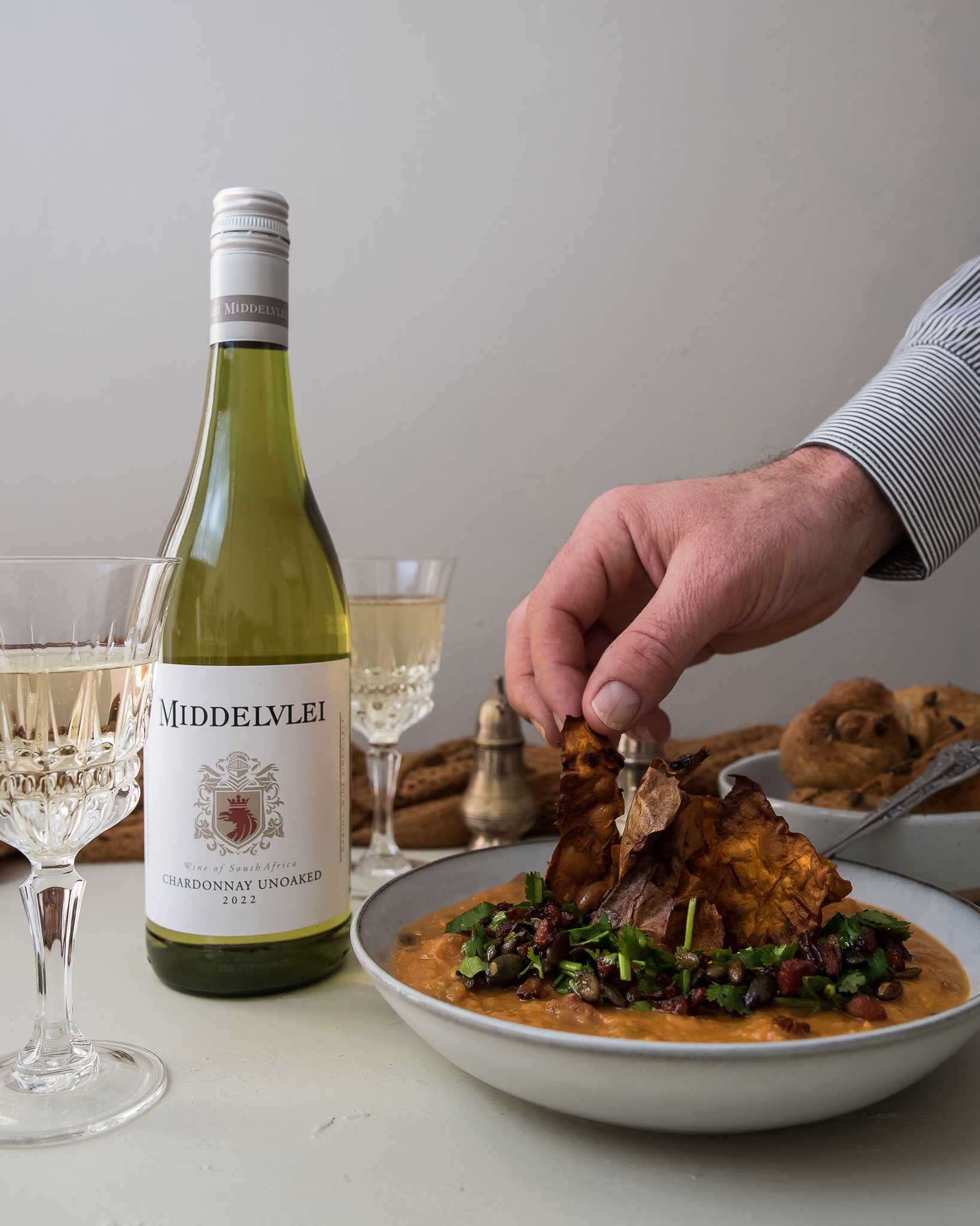Now, bringing this earthy sweetness together with the delicious spicy oiliness of thick slices of chorizo creates a certain kind of magic that a Middelvlei Unoaked Chardonnay knows just how to appreciate. Add a voluptuous wholewheat pumpkin seed roll, still warm from the oven, and I don’t care what season we’re in…this is pure heaven.