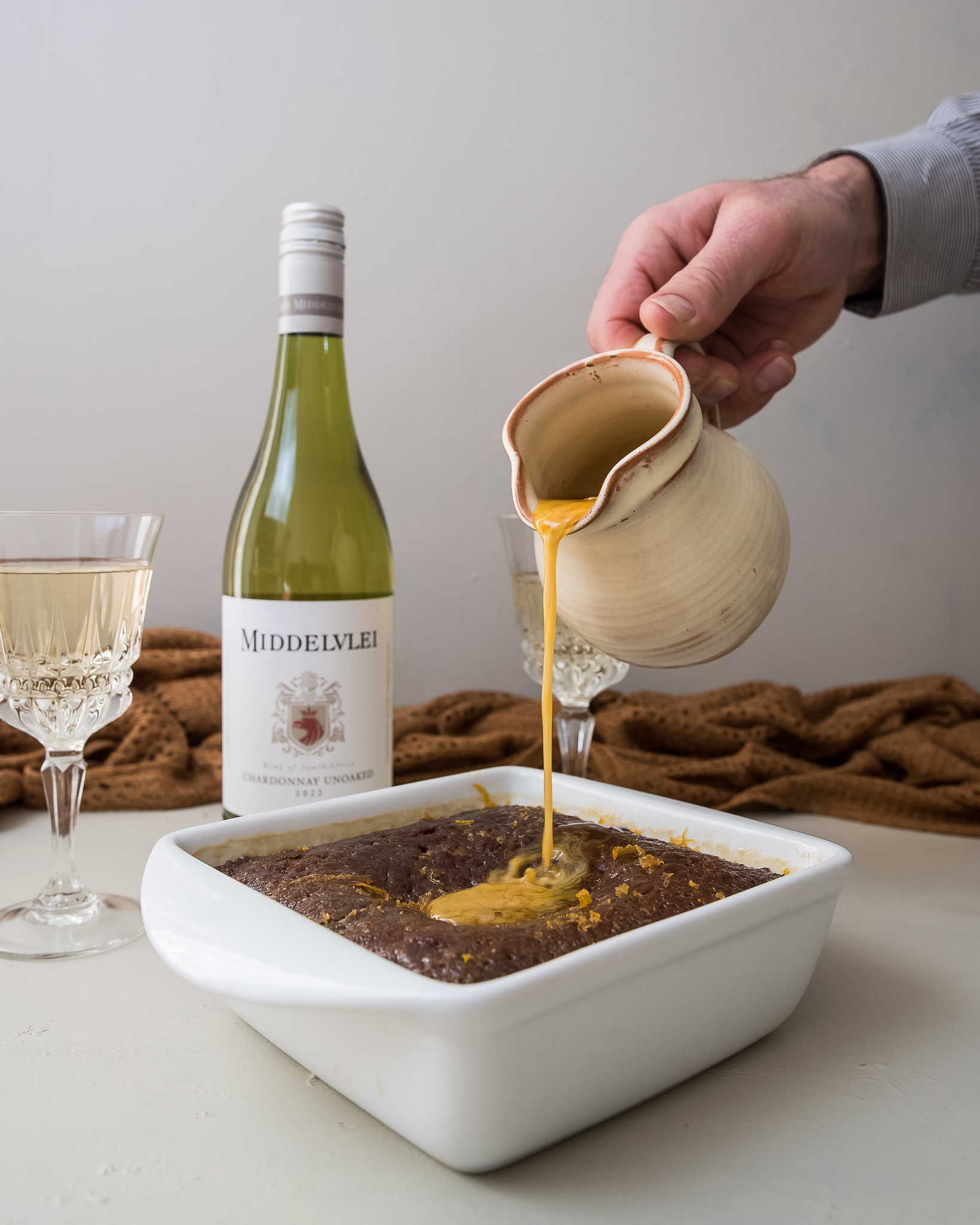 Nothing fancy and not made with any expensive ingredients, the Jan Ellis pudding is the perfect companion to the Middelvlei Unoaked Chardonnay as an after-dinner treat, allowing the tropical nuances of the wine to really come forward, allowing for a long and lingering citrus finish.