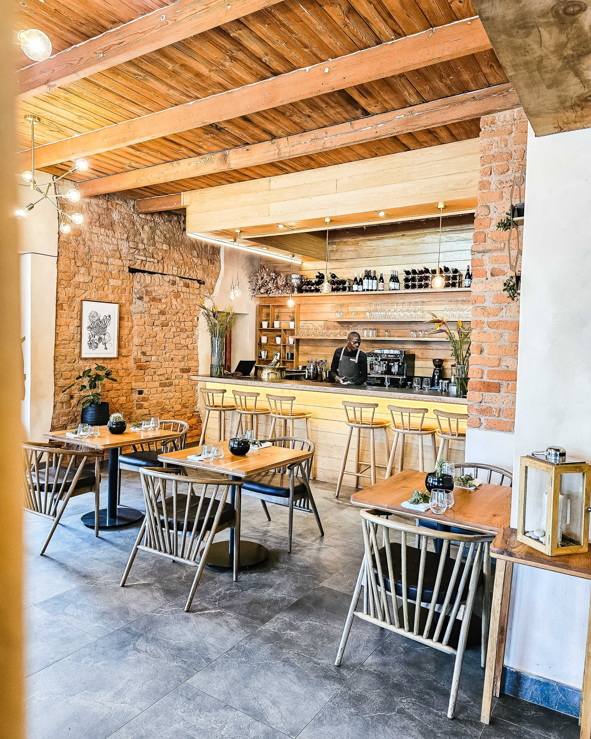 Somehow I completely overlooked the fact that our lunch reservation was made for the Franschhoek Bastille Festival weekend, held at the end of July. Now feeling suitably celebratory, we carefully made our way down the busy main road, adorned with splashes of red, white and blue as Cape Town enjoyed the abundant offerings of the festival. We easily found Eleven Restaurant towards the end of the main road, beautifully seated in one of the town’s many historical buildings, Heritage Square. I couldn’t wait to experience new tastes and textures, which is something Chef Pieter specialises in.