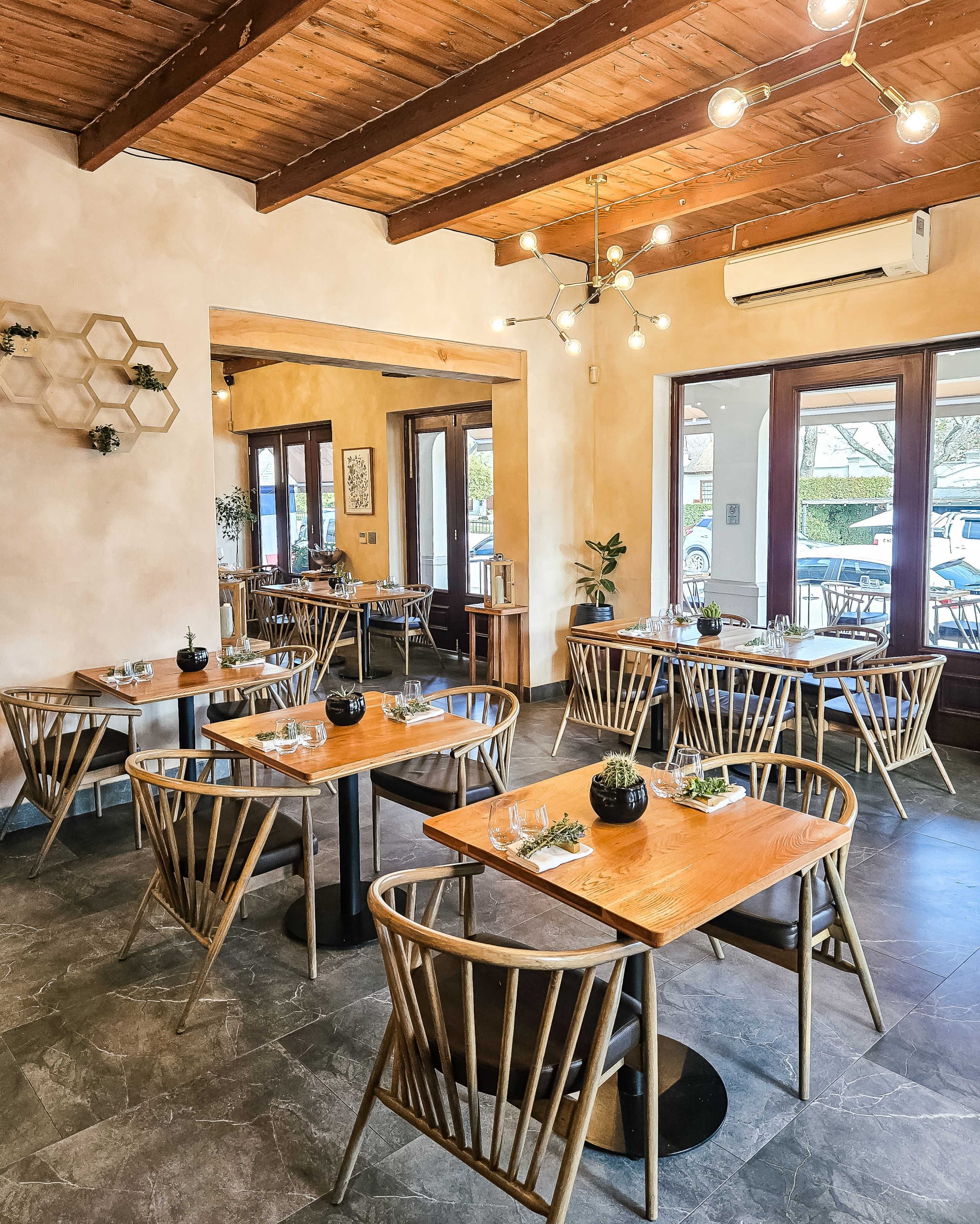 As we walked through the doors of Eleven, I was pleasantly surprised by the juxtaposition of my expectations against what I found inside: stylishly decorated in earthy nudes, the interior was much more simple and practical than I imagined it would be. Within an industrial framework, modern and historical elements like wood, exposed brick and copper are showcased alongside each other, creating a refined dining space that feels sophisticated, yet ambient and semi-casual.