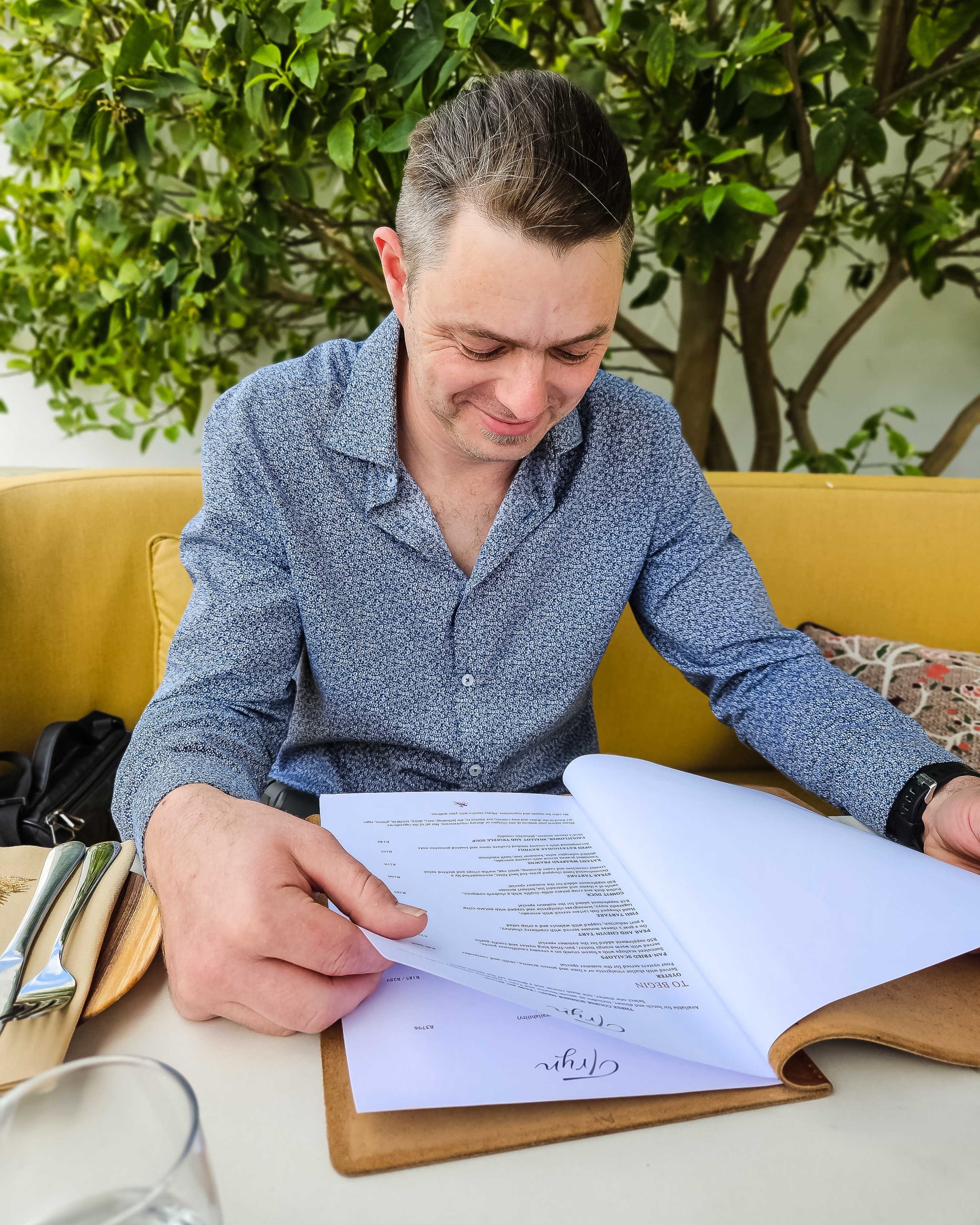 With views over the newly planted Chardonnay vines, and the majestic blue mountains in the background, Tim and I chose a table outside. Our server and sommelier for the afternoon was Nandi, who thoughtfully and attentively guided us through the menu whilst making suggestions and recommendations for our lunch.